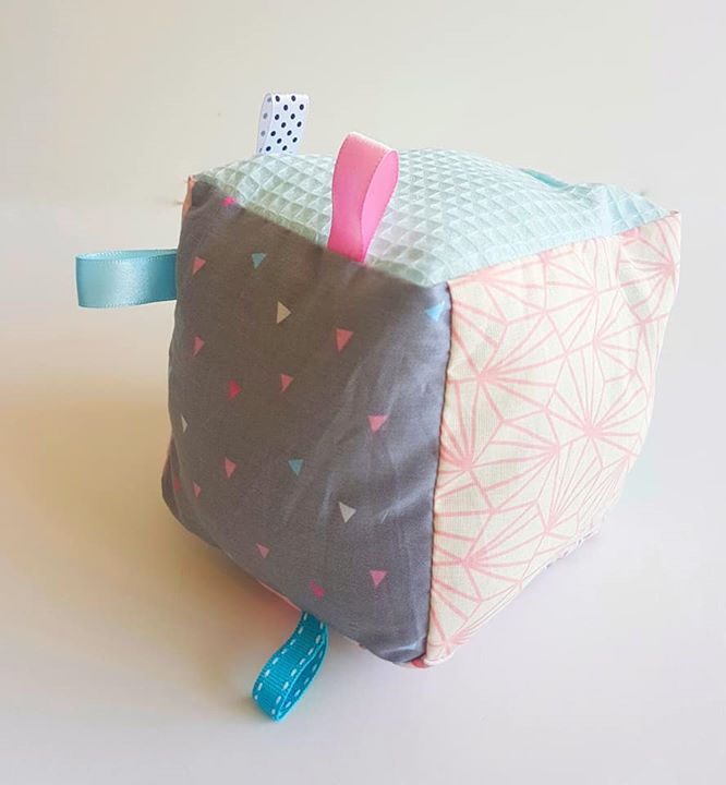 קוביה מרשרשת ארנבונים - ורוד לבן אפור
